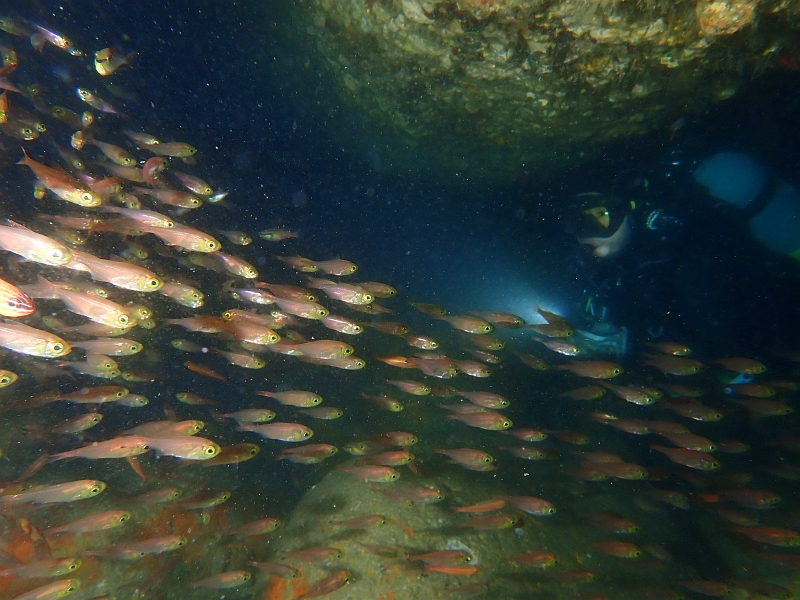 この群れに混ざってイッセンタカサゴもいましたよ。