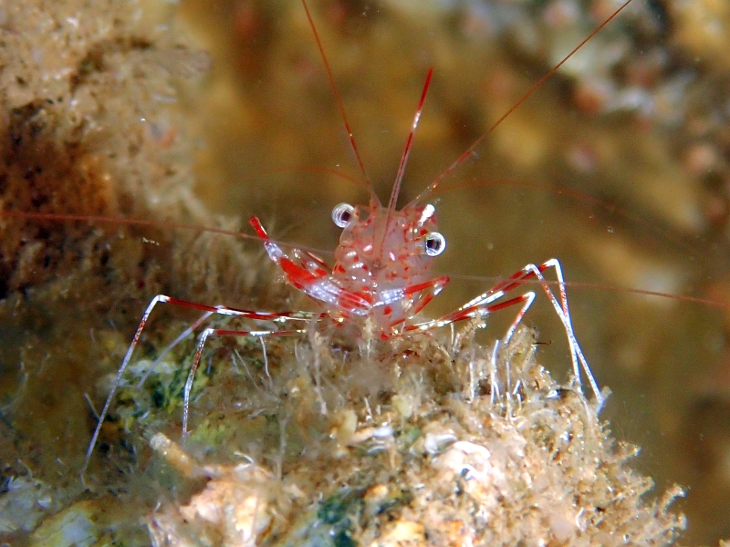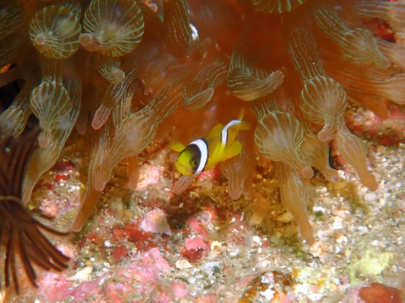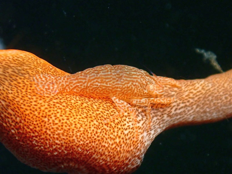 ナシジイソギンチャクそっくりに擬態しているアヤトリカクレエビ。