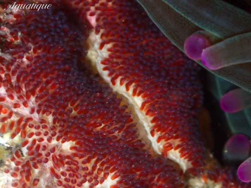 最近観察し続けているクマノミの卵は色が赤から茶色に変わっていました。