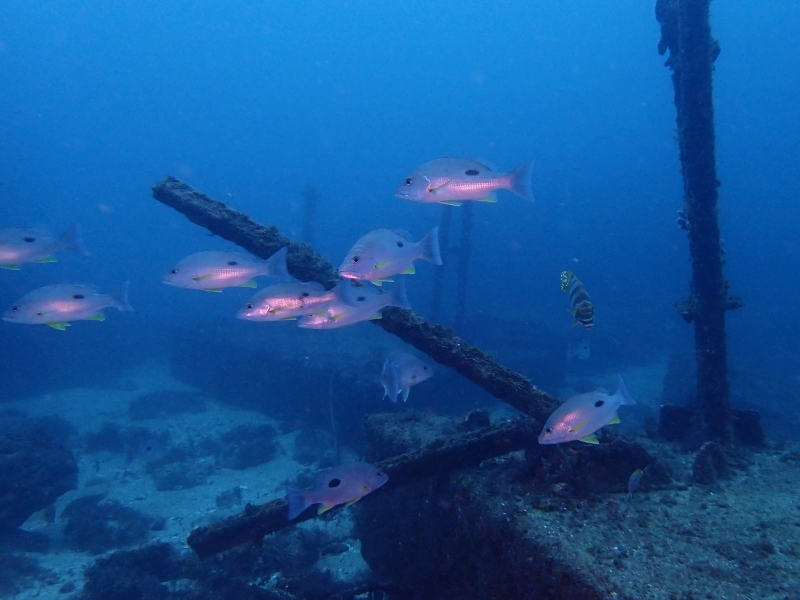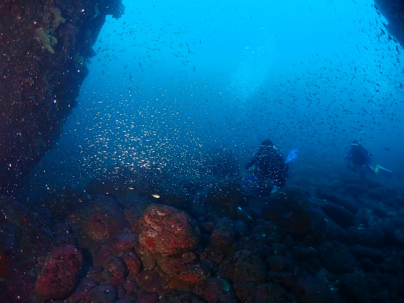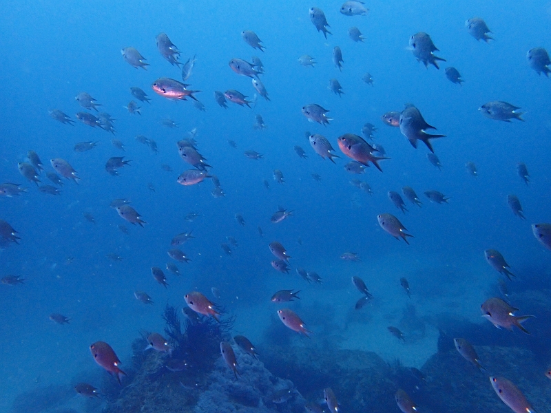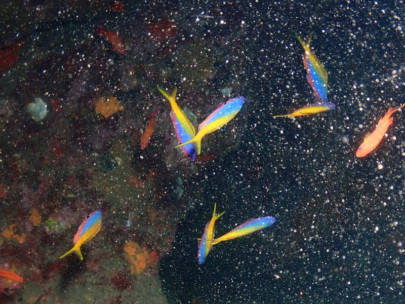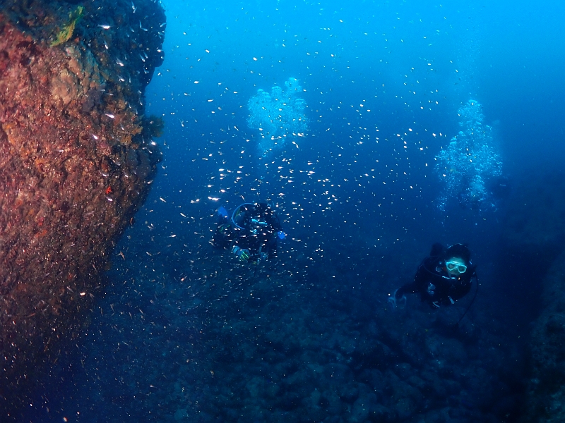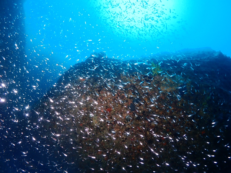 先日までHの穴付近にはイシモチの仲間の幼魚が群れていましたけど、今は-24mのアーチ付近にいます。