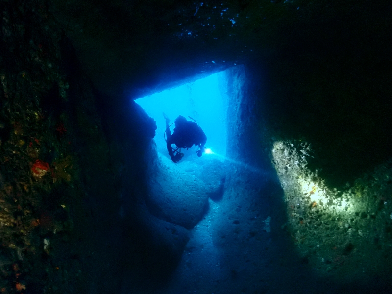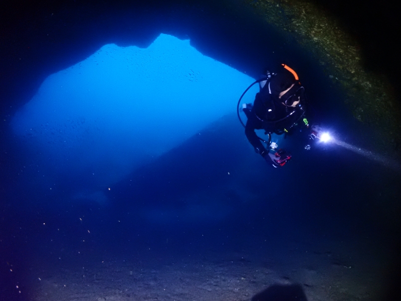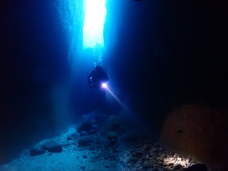 1本目 島前 ⇒ 水路下の洞窟 ⇒ Hの穴 ⇒ -24mのアーチ ⇒ たて穴 ⇒ 大牛の洞窟