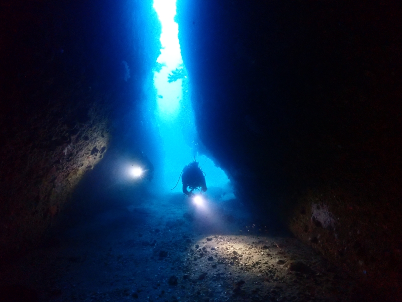 昨日他のダイバーが入っていったので諦めた小牛の洞窟にも行ってきました。