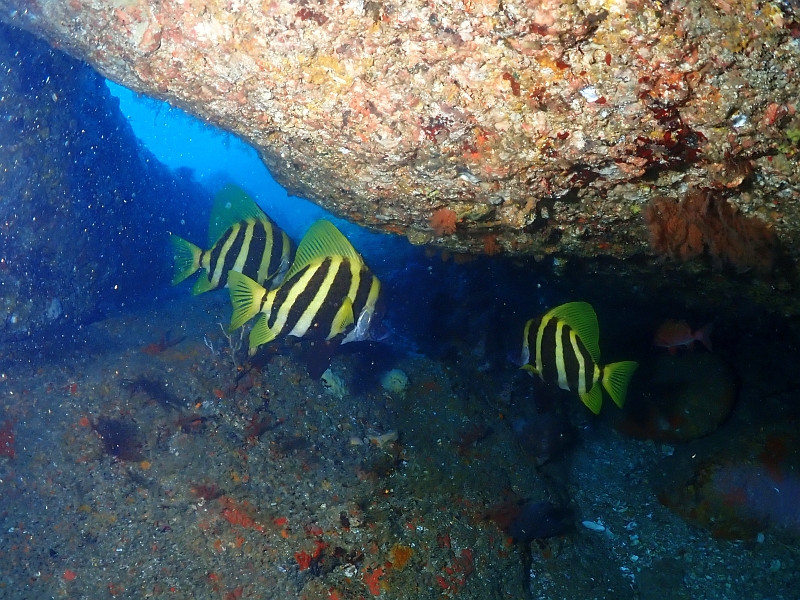 2本目 小牛裏 ⇒ 小牛の洞窟 ⇒ -24mのアーチ ⇒ Hの穴 ⇒ 島前