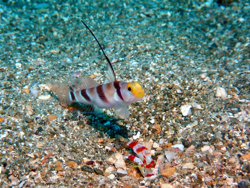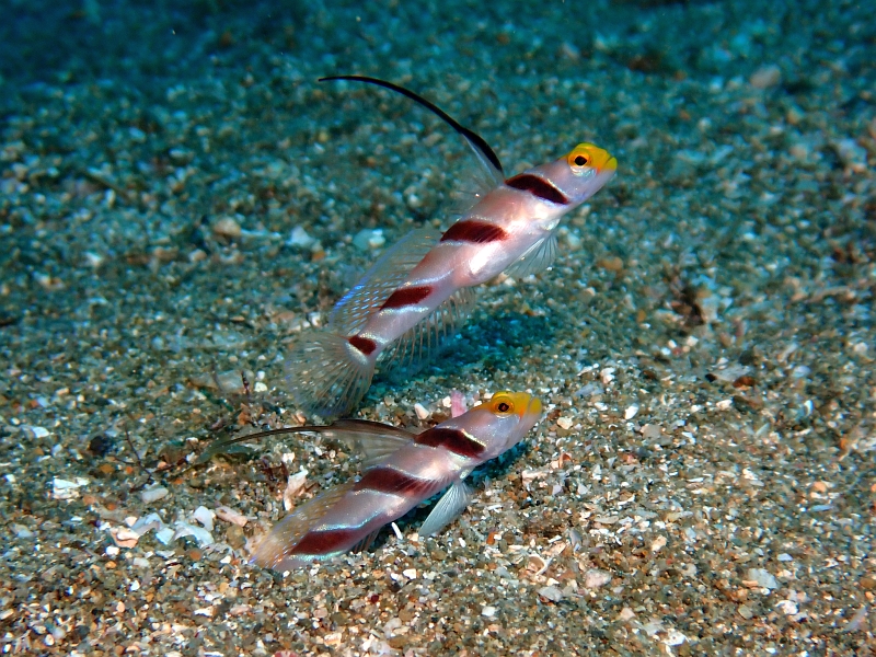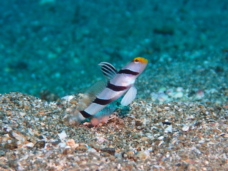 ダテハゼと共生してるリュウキュウハナハゼなど砂地にはハゼがいっぱいです。