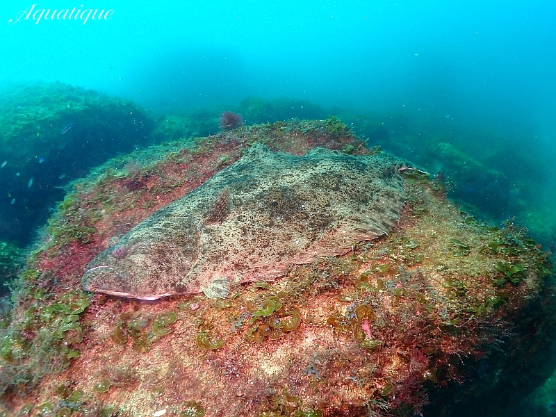 このキビナゴの群れを狙っているのか、大きなヒラメが岩の上に寝そべっていました。