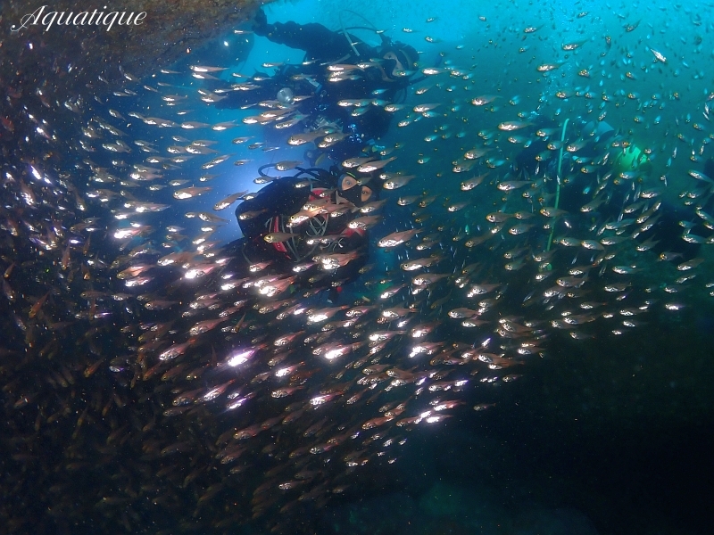 -24mのアーチ付近のイシモチの仲間の群れです。