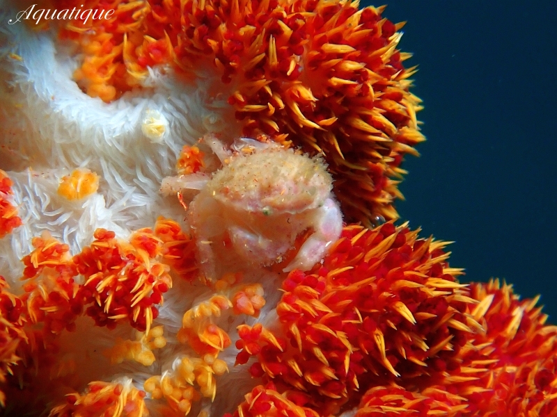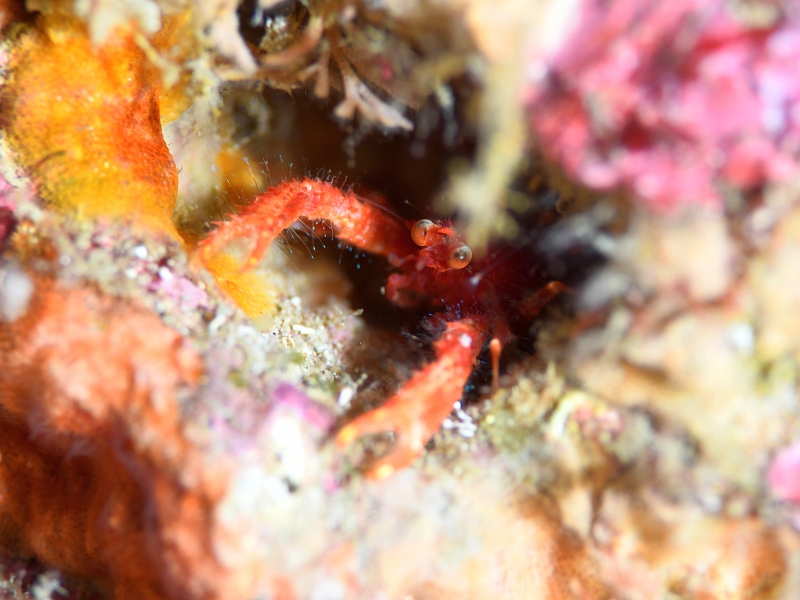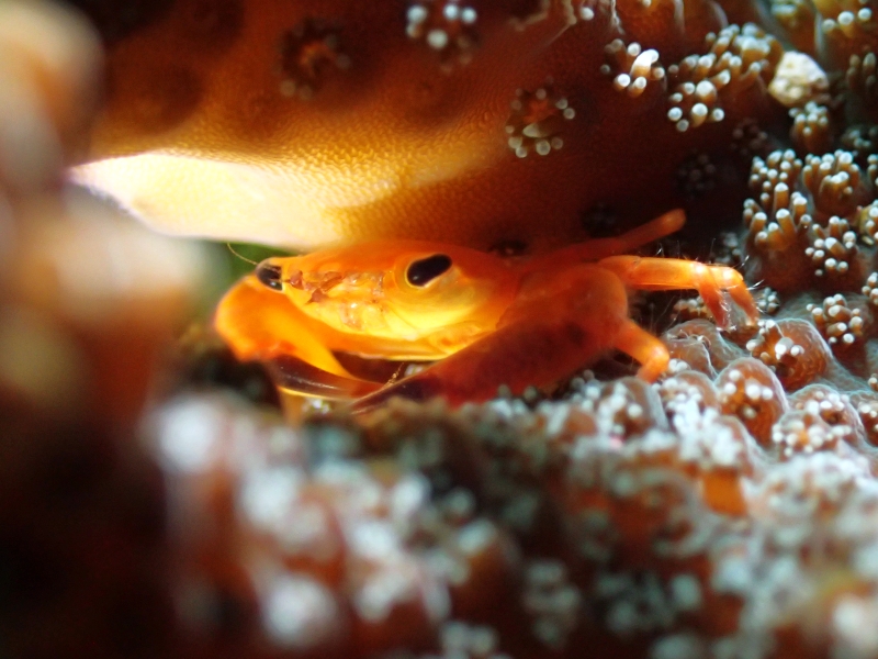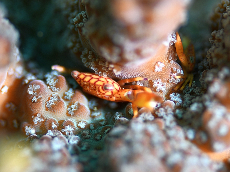 トゲトサカに自分で穴を掘って隠れているマルタマオウギガニもいました。