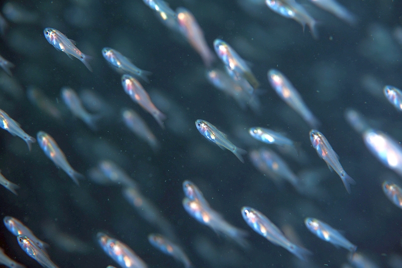 この群れの魚をアップで撮った写真を見たらネンブツダイかな?