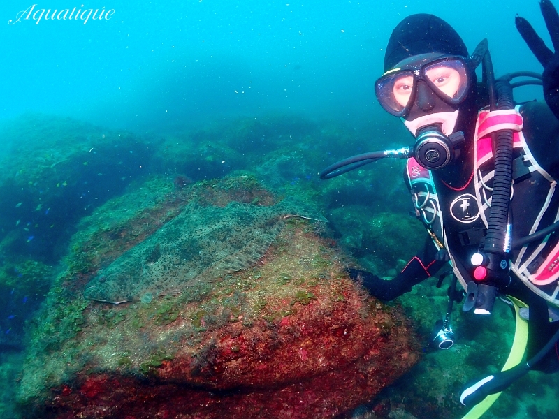 大きなヒラメと遭遇記念に2ショット撮影してみました。
