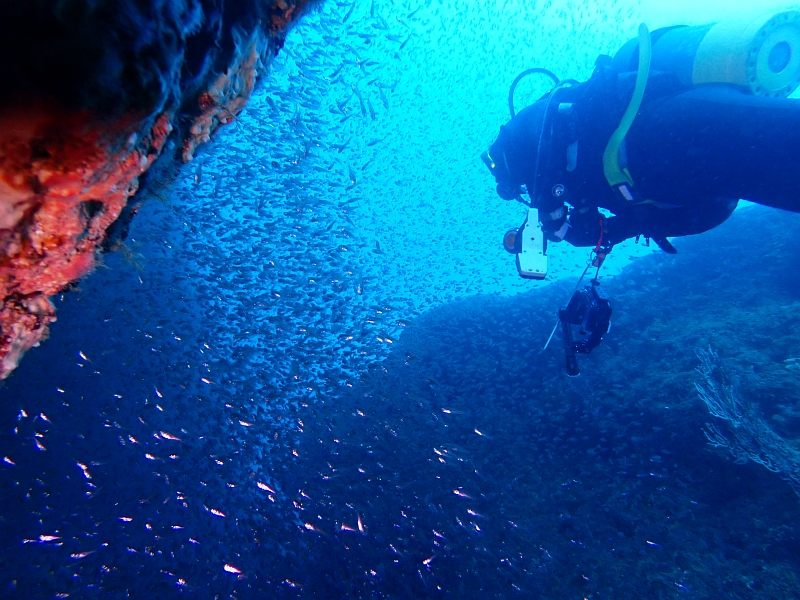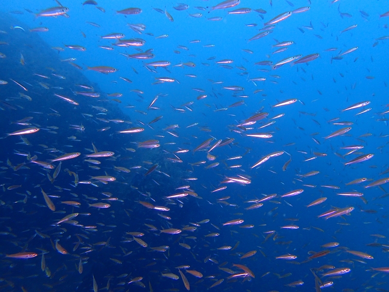 相変わらず魚影が濃くて潜降してすぐにキビナゴの大群です。