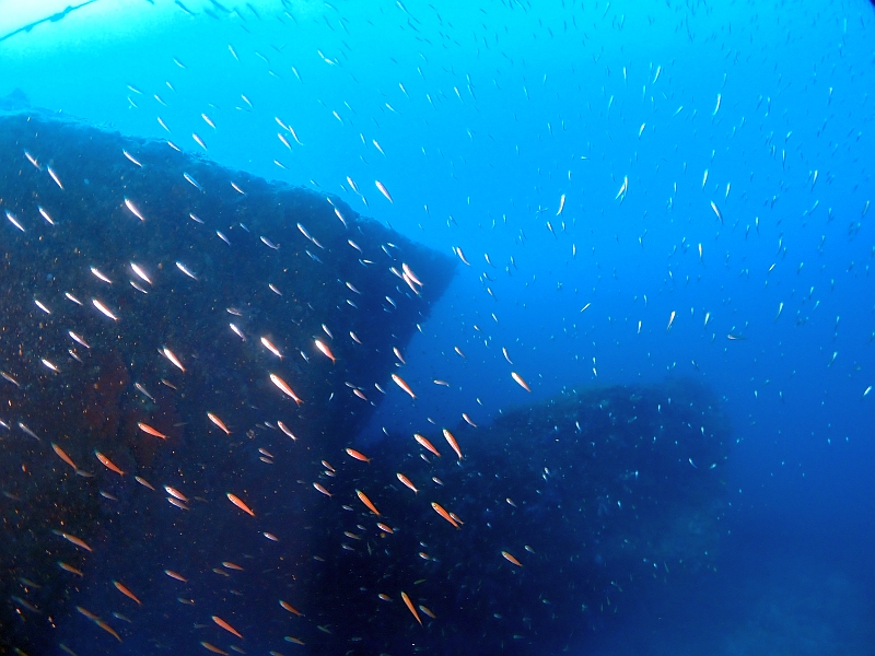 クランクにはネンブツダイなどのイシモチの仲間の群れがグッチャリいますよ。