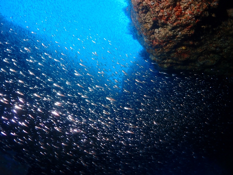 キビナゴは島裏にも小牛横にも島前にもあちこちでキラキラ群れています。