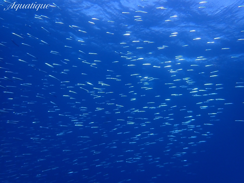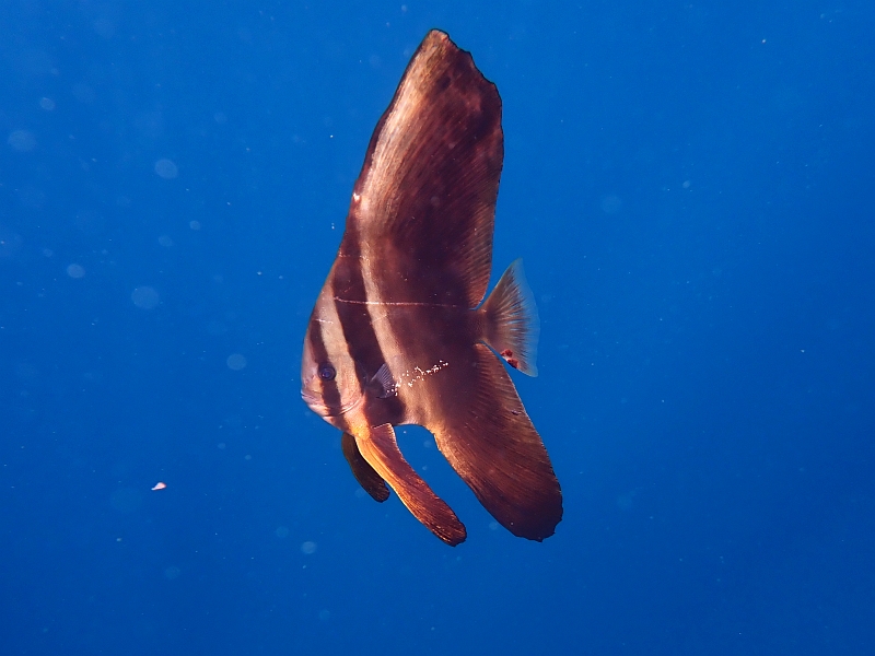 潜降ロープの水面下で大きく育ったツバメウオが出迎えてくれました。