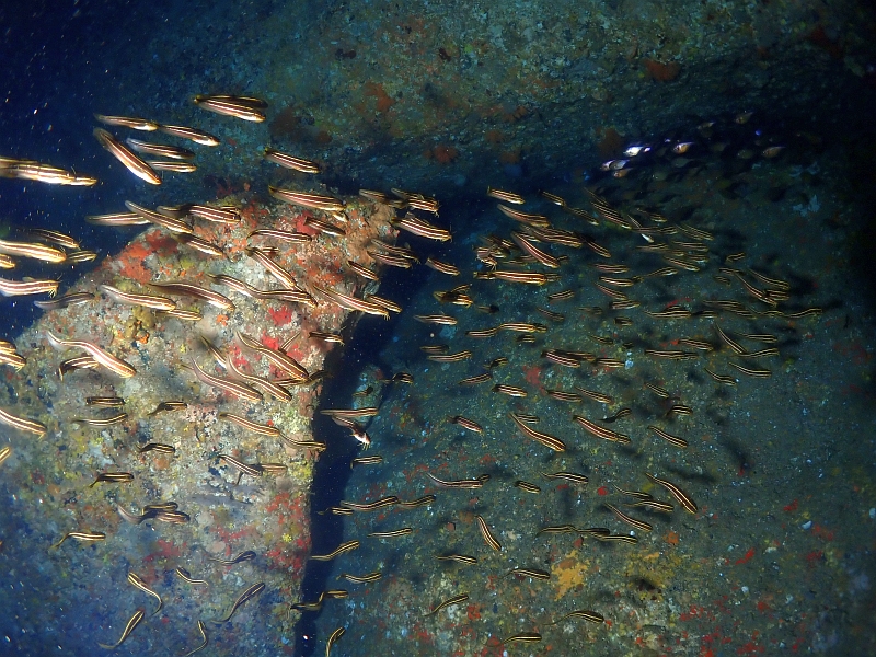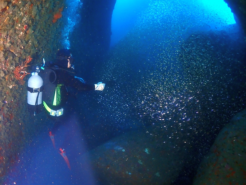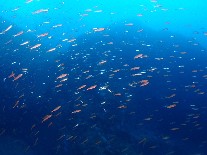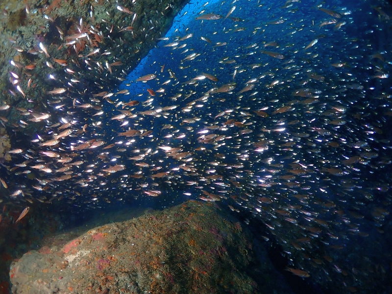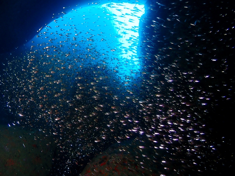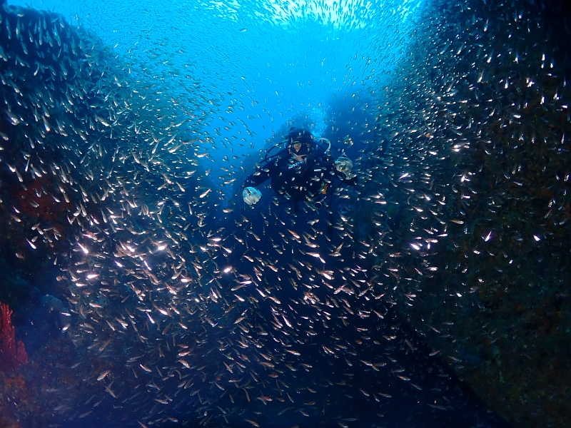 そしてHの穴を抜けたらネンブツダイなどの群れが待っています。