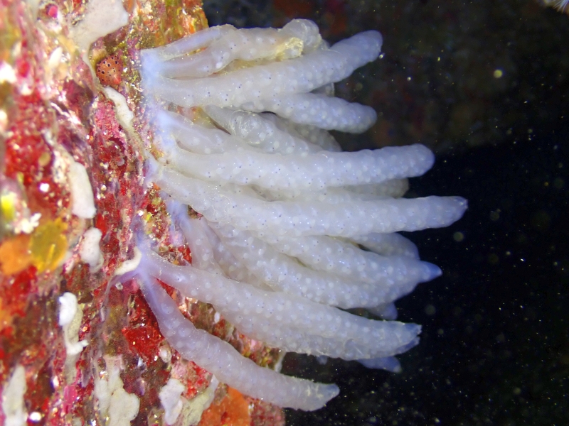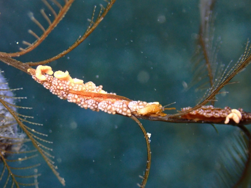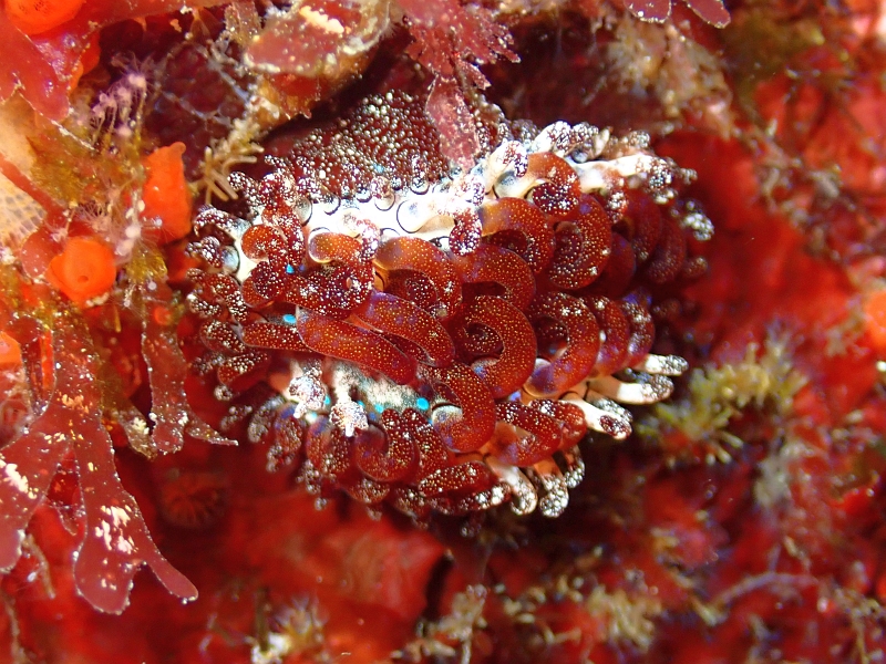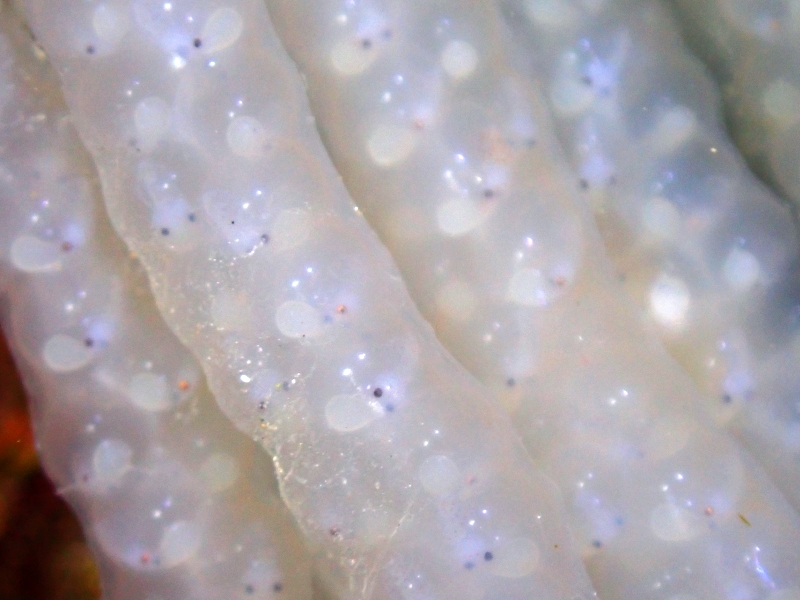 その側には産卵中のミレニアムマツカサウミウシもいました。