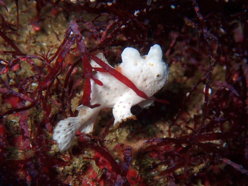カエルアンコウの仲間は、白いイロカエルアンコウの子どもと
