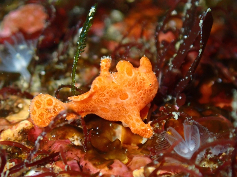 オレンジ色のオオモンカエルアンコウの子供がいました。