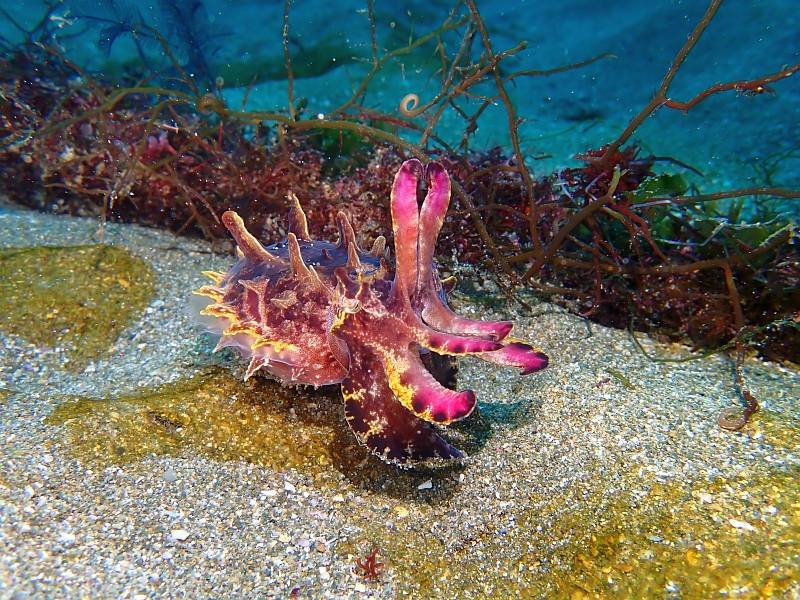 この時期の黄金崎ビーチで毎年見ているフジタウミウシ属の1種。
