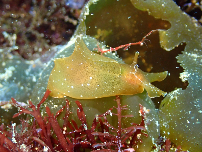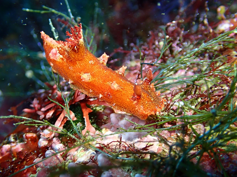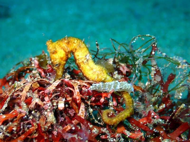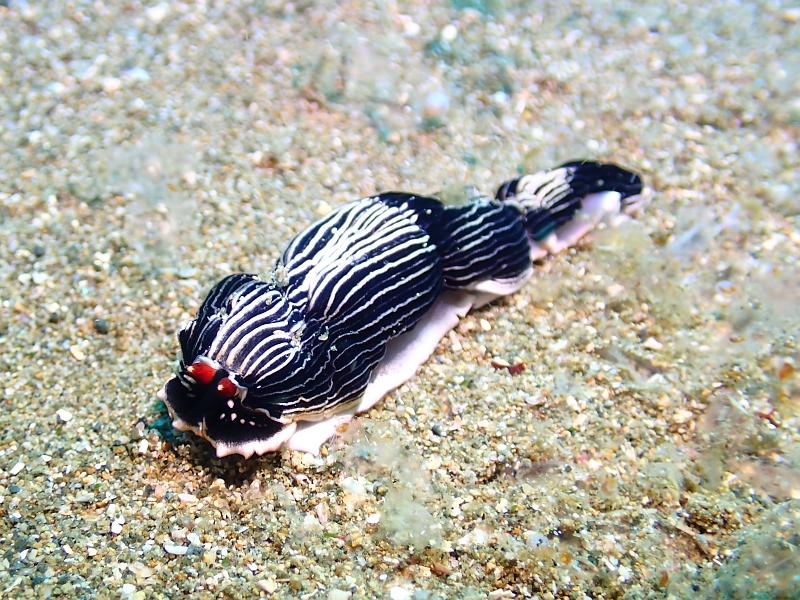 そしてオオウミウマですけど、尻尾付近をゴシキミノウミウシが移動していました。